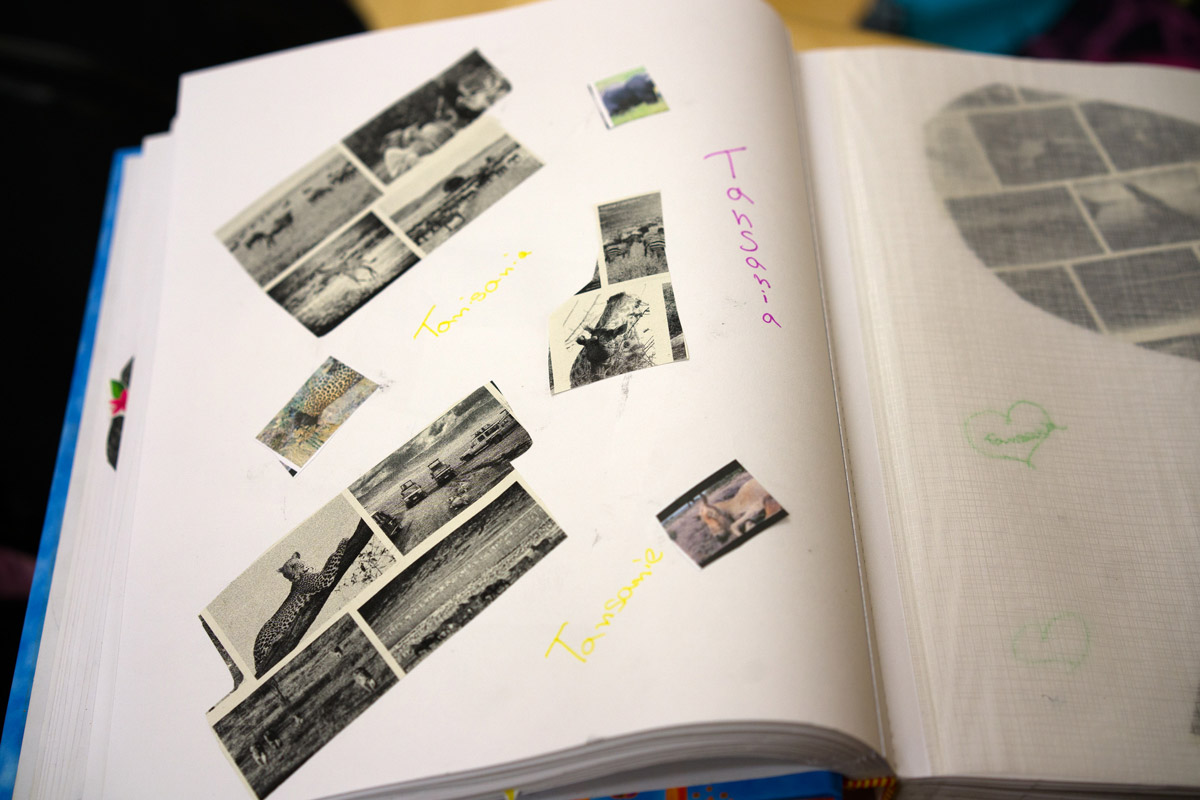 Zusätzlich hatte Jan ganz viele Bilder aus Tansania ausgedruckt, die in der Gruppe neugierig betrachtet wurden: Briefmarken mit Vögeln, Banknoten mit Elefanten, dem tansanischen Präsidenten, Menschen bei verschiedenen landestypischen Alltagsbeschäftigungen in regionaler Kleidung.