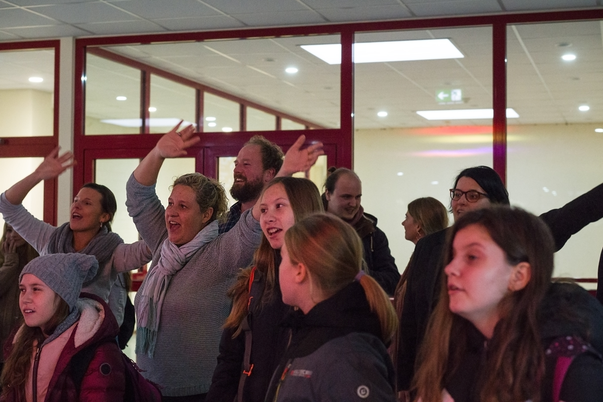 In den letzten zwei Wochen setzten wir uns mit ein paar Schüler*innen und Lehrer*innen und dem Künstler Jan Lotter zusammen und überlegten, wie wir zum Ende des Jahres gemeinsam eine schöne Aktion gestalten könnten. So kamen wir gemeinsam auf das „Rudelsingen“, welches uns schon einmal viel Freude bereitet hatte.