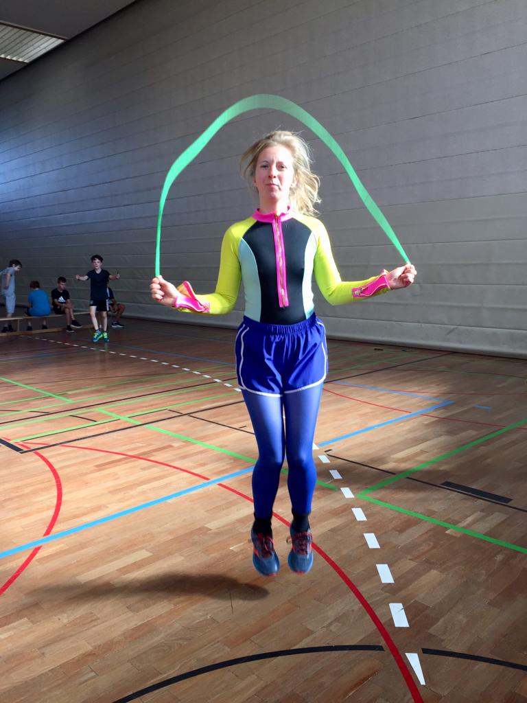 Nach Jahren der „traumatischsten Erfahrungen in sportlichen Wettkämpfen und des Sportunterrichts“ (O-Ton Janina) hat sie sich dazu entschlossen, den Kampf gegen den „inneren Schweinehund“ aufzunehmen und in diesem Jahr an den Bundesjugendspielen teilzunehmen. Zur Einstimmung gestaltete sie im Vorfeld motivierende Plakate, welche die Bundesjugendspiele bewarben. Am Wettkampftag begleitete sie eine 6. Klasse (Klassenlehrerin Frau Lux) und sorgte hierbei insbesondere bei den Wartezeiten zwischen den Stationen, aber auch durch die äußerst professionell geführte Vorbereitung – insbesondere in der Wahl der Funktionsbekleidung – für eine positive Atmosphäre, welche die Schülerleistung beflügelte.