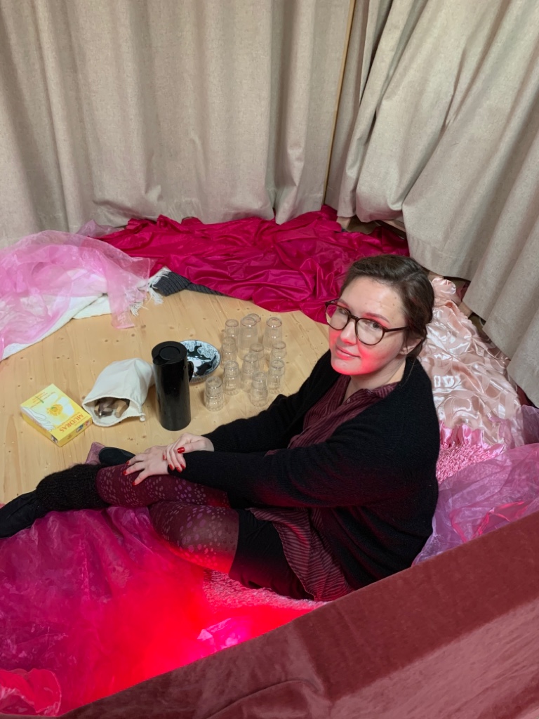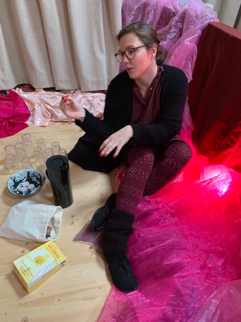 Eine in lila gekleidete Esoterikerin (Die Deutschlehrerin Lisa Hertweck) lud die zweite Hälfte der Klasse in einen kuschligen „Mutterleib“ ein, wo sie inmitten der rosafarbenen Seidentücher mit orientalischem Tee empfangen wurden und mithilfe spekulativer Deutungskünste, – wobei Streifenhörnchen, Einhörner und Chakra-Karten ihren Einsatz fanden, – über die tiefgründigen Geheimnisse des Menschseins philosophierten. Für die geistreichen Wortbeiträge oder das ebenso faszinierende Schweigen erhielten alle natürlich eine 1.