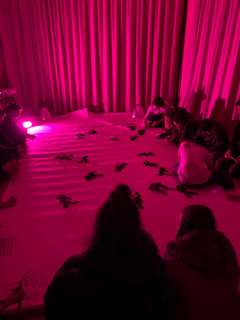 Die Schüler*innen der neunten Klasse erschlossen sich dieses abstrakte und doch so realitätsnahe Thema anhand einer kreativen Deutschstunde, die sich thematisch an Hermann Hesses Erzählung: „Unterm Rad“ orientierte. Dazu fanden sie sich im Fliegenden Künstlerzimmer ein, wo sie bereits von einer sehr motivierten, als Sportlehrerin verkleideten Künstlerin Janina erwartet und sogleich in zwei Gruppen aufgeteilt wurden.