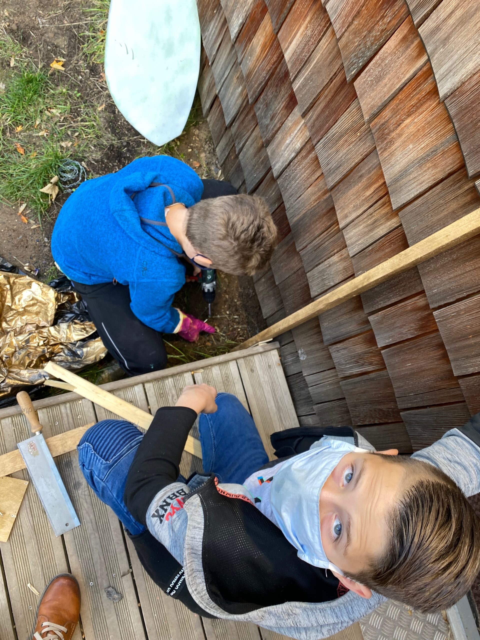 F: Habt ihr schon einmal etwas aus Holz gebaut? A: Ja, schon ganz oft.