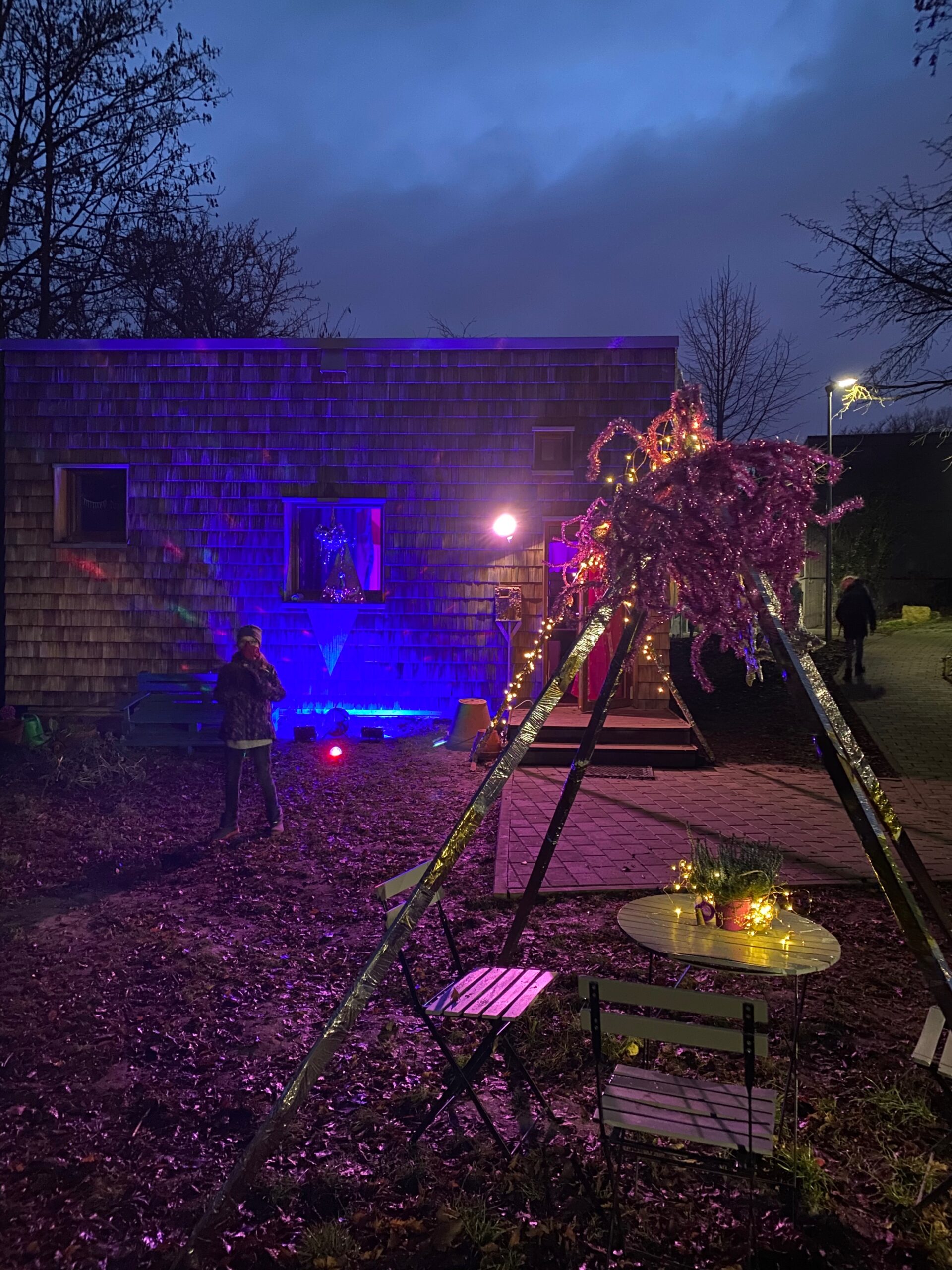 Amy und Ilay bauen fleißig an einem riesigen Stern, den die beiden Hausmeister Stefan und Holger aber, der Statik wegen, in Eiszapfen verwandeln (und mir ein Weihnachtsgeschenk machen: ein silbernes Weihnachts-Fahrrad!)
