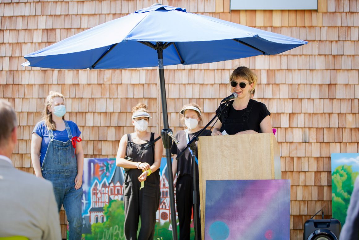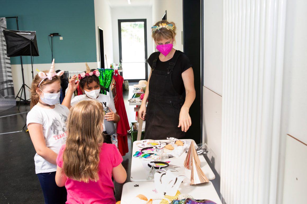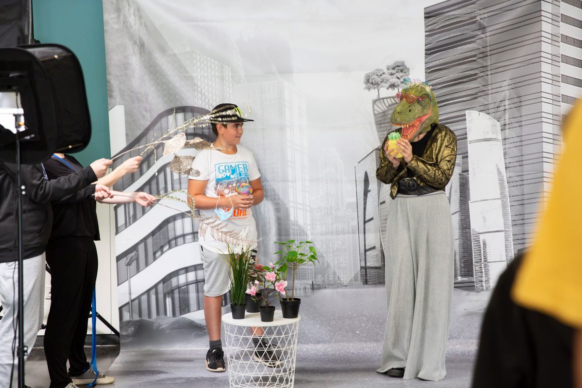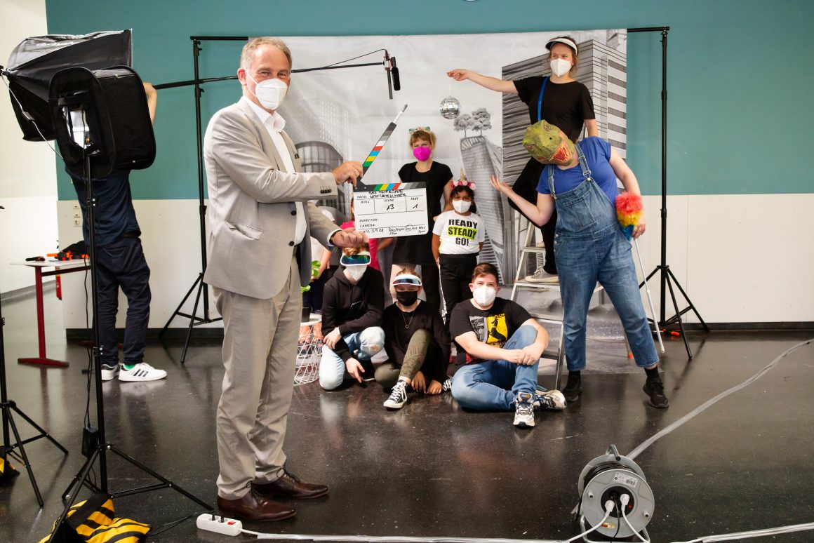 An einem Filmset konnten die Schüler:innen in verschiedene Rollen (Kamera, Ton, Requisite, Schauspieler:in…) schlüpfen und die Arbeit der Künstlerin Claudia Sárkány kennenlernen. Thema der Filmszenen war „Das fliegende Weltraumzimmer“: In kurzen Szenen wurden verschiedene Einblicke in eine Zukunft gegeben, in der die Menschen nicht mehr auf der Erde leben… Beim anschließenden Pressetermin wurde das FlieKü-Schuljahr offiziell eingeläutet: Landrat Michael Köberle war vor Ort und begrüßte Claudia Sárkány. Ein gelungener Auftakt!