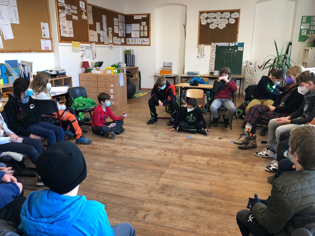 Denise Schäfer, Klassenlehrerin der 4a an der Schule im Emsbachtal, hat mich gefragt, ob ich mit ihrer Klasse etwas machen kann, das den Klassenzusammenhalt stärkt. Sie hatte den Eindruck, dass die Unruhe und zerfaserte Pandemie-Zeit an und abseits von der Schule für große Unruhe innerhalb der Klasse gesorgt hatte und die Schüler:innen gar nie ein freudiges, stabiles Miteinander erleben konnten.