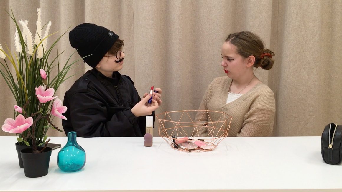 S: Wir hatten uns überlegt, dass wir etwas über Beauty-Gurus im Internet machen und der Frage: „Vielleicht sind die online ganz anders als in ihrem echten Leben?“ nachgehen wollen. Davon handelt unser Sketch.