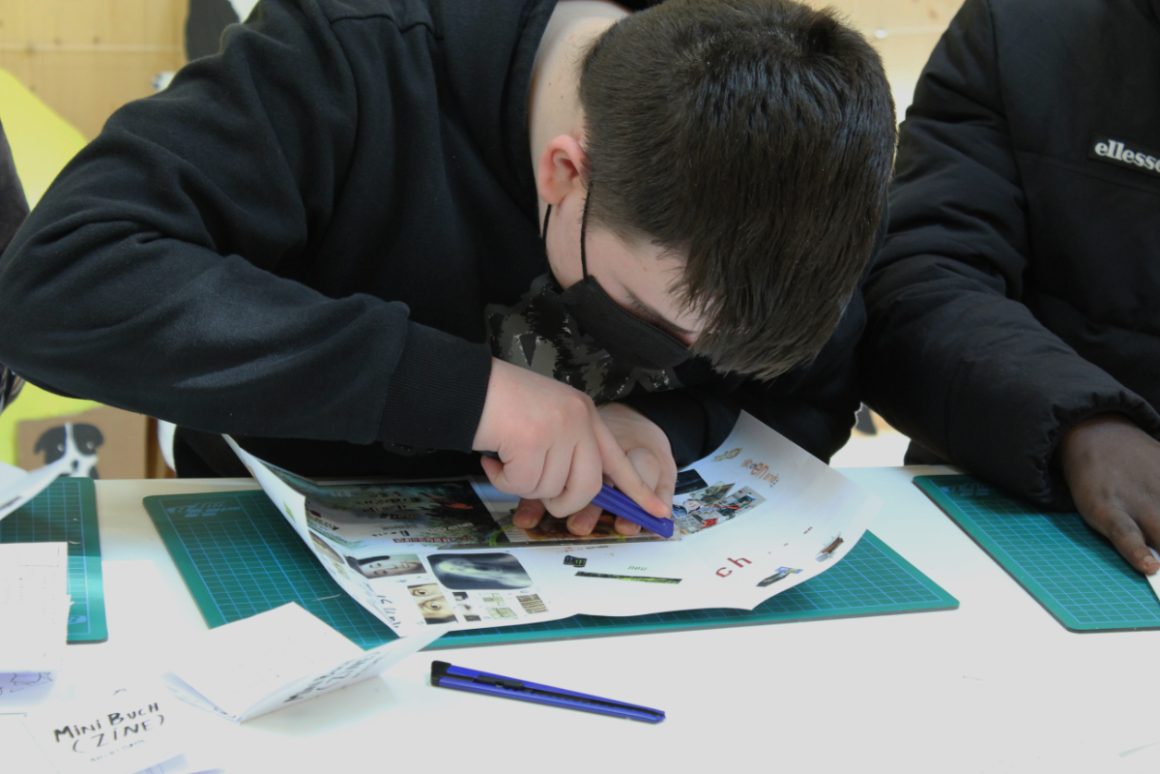 Wir hatten als Thema in Ethik „die Zeit“. Unsere Aufgabe war es, aus Zeitschriften und Werbungen Bilder auszuschneiden und unser Wochenende darzustellen. Wir konnten unseren Ideen freien Lauf lassen. Jeden Donnerstag sind wir zu Eva Funk ins Künstlerzimmer gegangen. Jede:r hat dort ein DIN-A4-Blatt bekommen und die Dinge aufgeklebt, die er:sie gerne am Wochenende macht. Danach wurden alle Bilder eingescannt und auf dem Computer bearbeitet. Daraus haben wir ein Heft gemacht, das dann dann für alle ausgedruckt wurde.