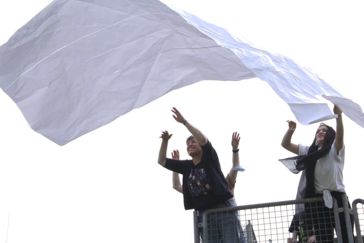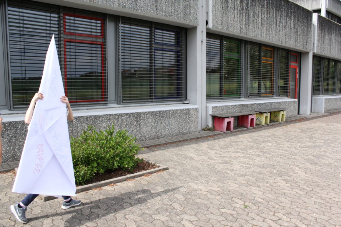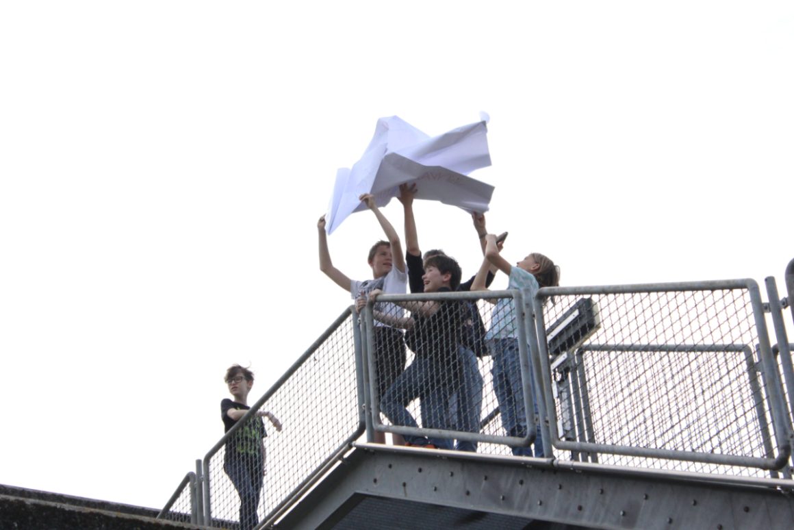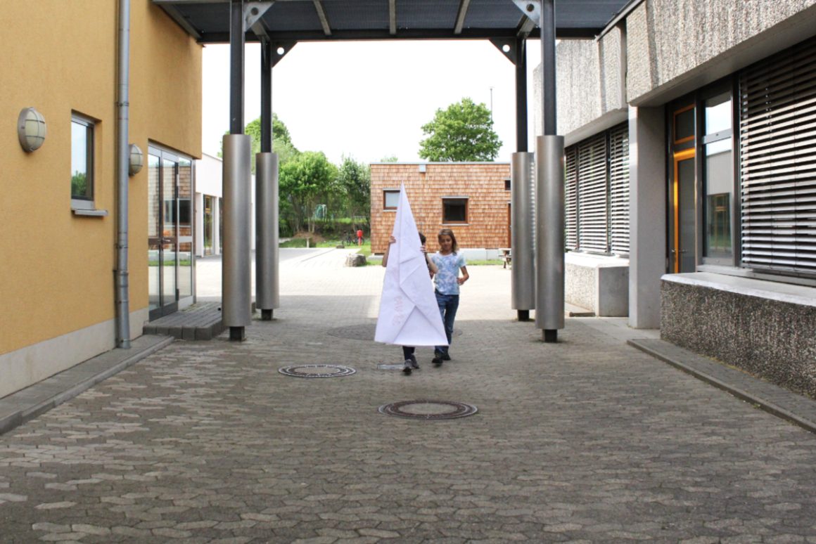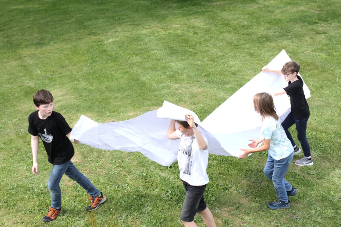 Der Wind stand zu gut, um ihn nicht zu nutzen und so bauten wir am Nachmittag den größten Papierflieger, den wir falten konnten. Nach dem ersten Testflug entschieden wir, den Flieger aufzufalten und den größten Papierfallschirm auszuprobieren. Wir gaben unserem Flieger 7 von 10 Punkten.