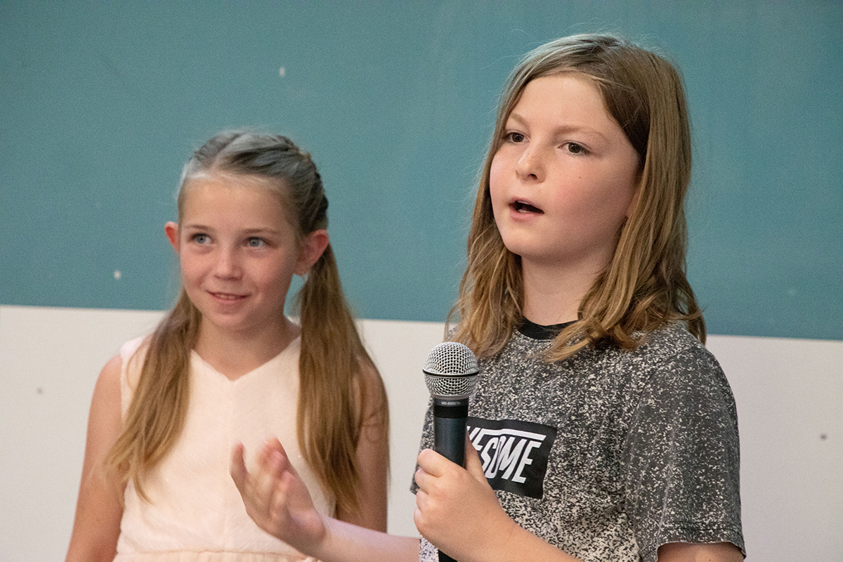 Die Künstlerin Claudia Sárkány bedankte sich bei den Lehrer:inen, die sie bei den Projekten unterstützt hatten. Und auch die Klassen bedankten sich bei der fliegenden Künstlerin, denn sie hat ihnen nicht nur die Kunst näher gebracht, sondern ihnen Zeit geschenkt und immer ein offenes Ohr für sie gehabt.