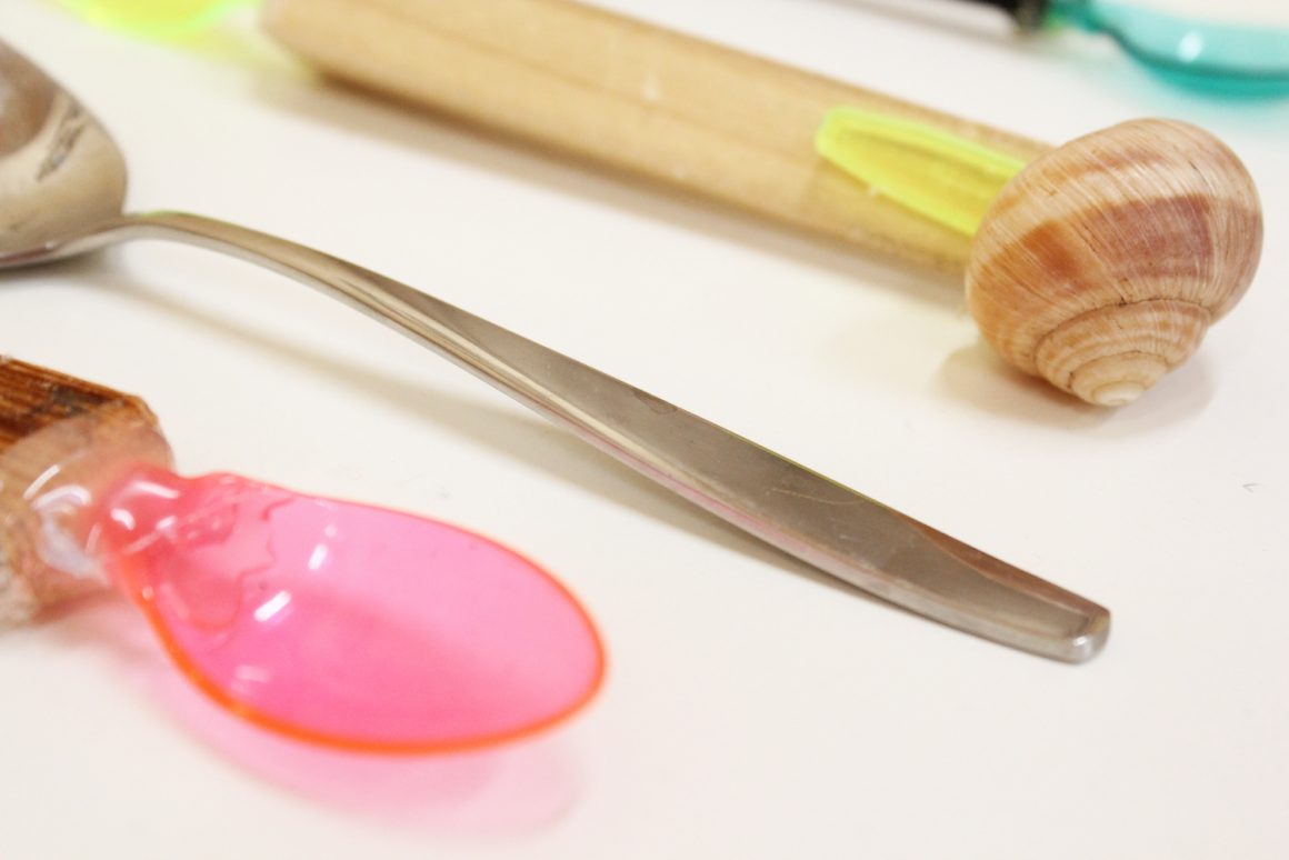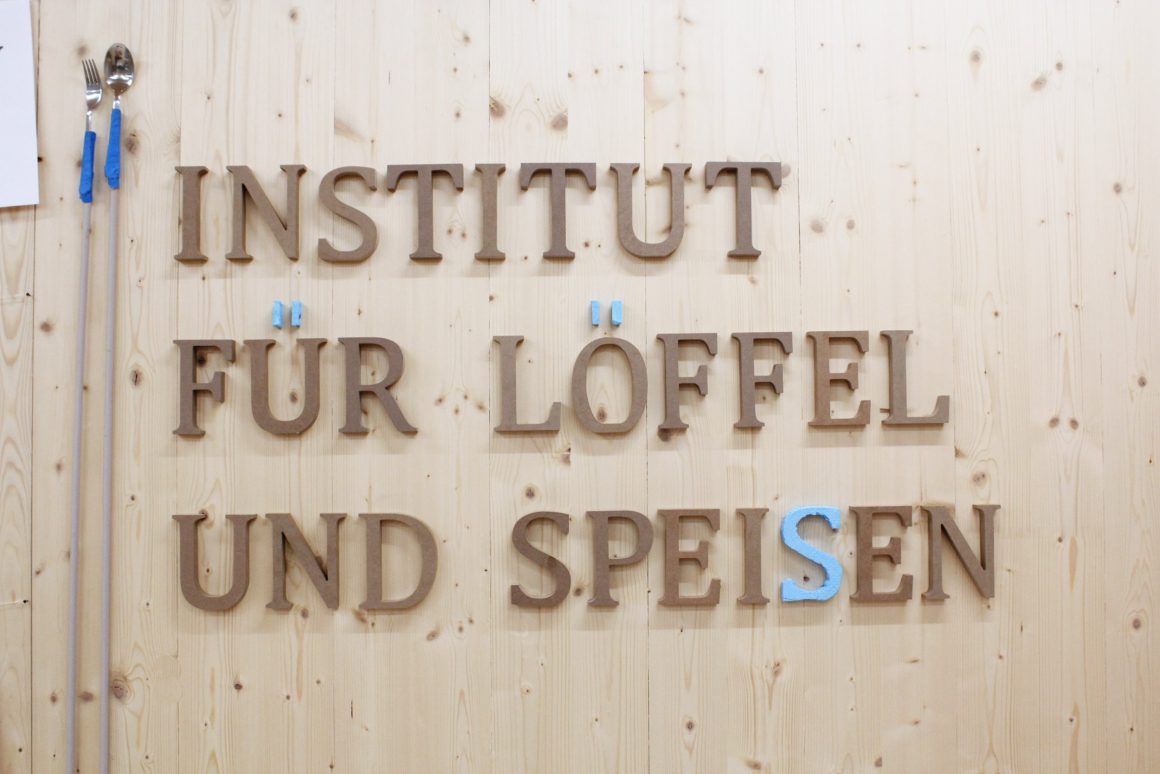 Am Tag der offenen Tür der Lüdertalschule öffnete auch das Institut für Löffel und Speisen seine Pforten. Hier war eine erste Materialstudie des Instituts für Löffel und Speisen zu sehen, welche die Anatomie des Löffels erforscht.