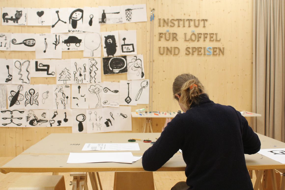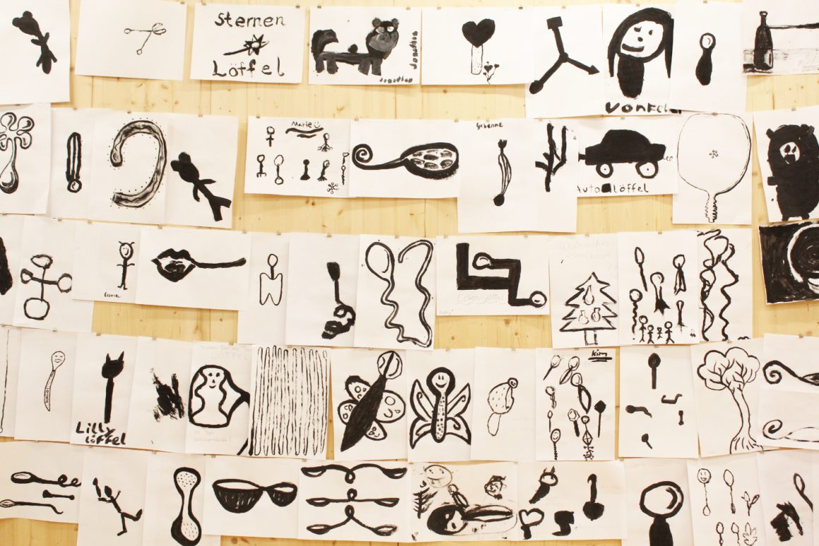 Gemeinsam wurden unterschiedliche Prototypen zeichnerisch entwickelt. Im unglaublichlichen Fall, dass man sich nicht für Löffel interessierte, gab es auch eine Puzzleecke mit wohlbekannten Motiven.