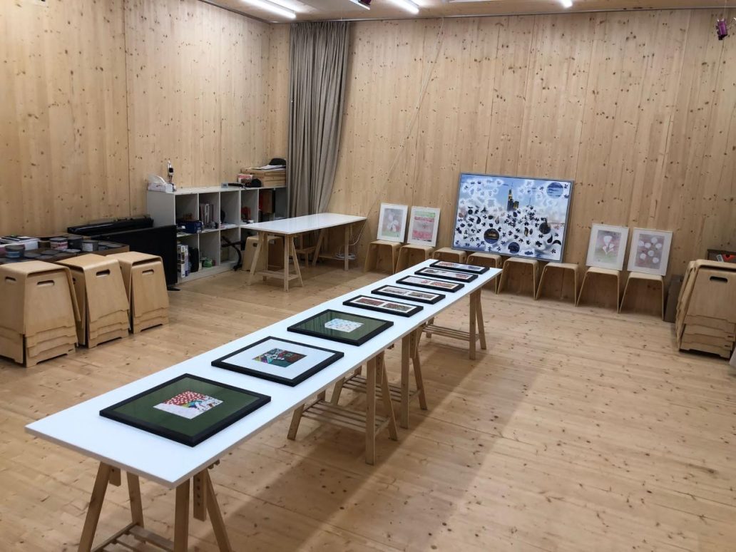 Am „Tag der offenen Tür“ der Schule stand auch die Tür des fliegenden Künstlerzimmers Besucher:innen offen!