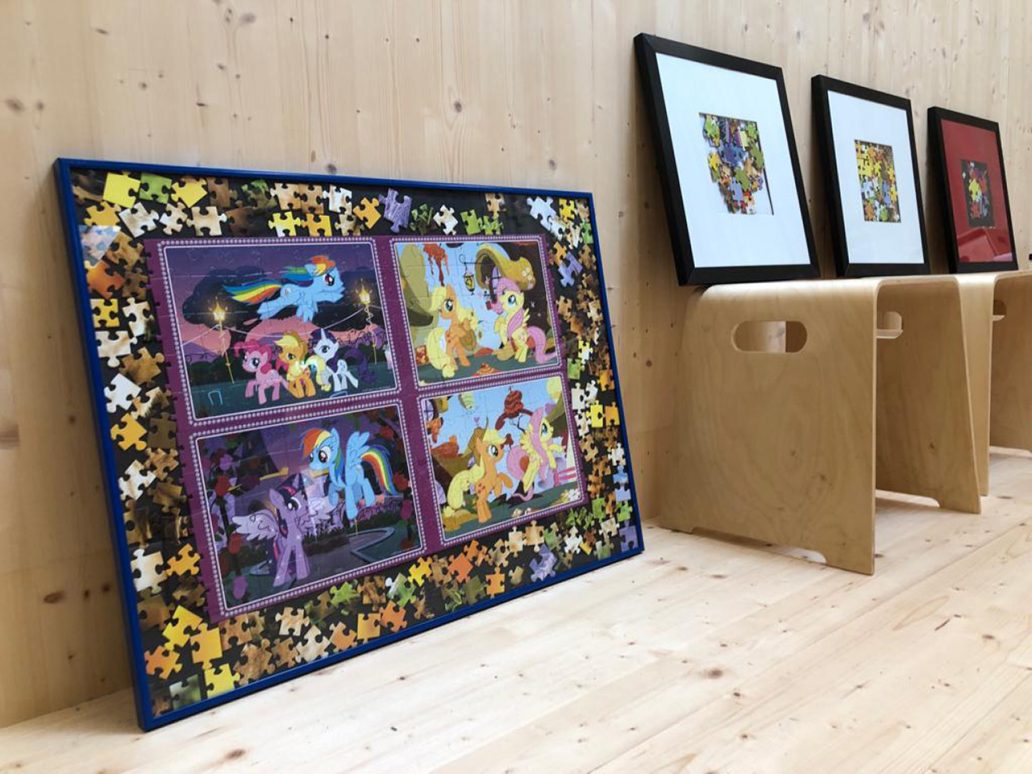 Beim zweiten Mal haben die Kinder versucht, das Puzzle auch als exaktes Bild einzubauen. Da die Zeit nicht ganz ausreichte und die Kinder es sehr gerne fertig stellen wollten, haben sie ihre Klassenlehrerin Frau Weber dazu überredet, noch eine Stunde länger weiterarbeiten zu dürfen. Nebenbei entstanden ein paar kleinere „Wildes-Durcheinander-Puzzleteile-Zufalls-Bilder“.