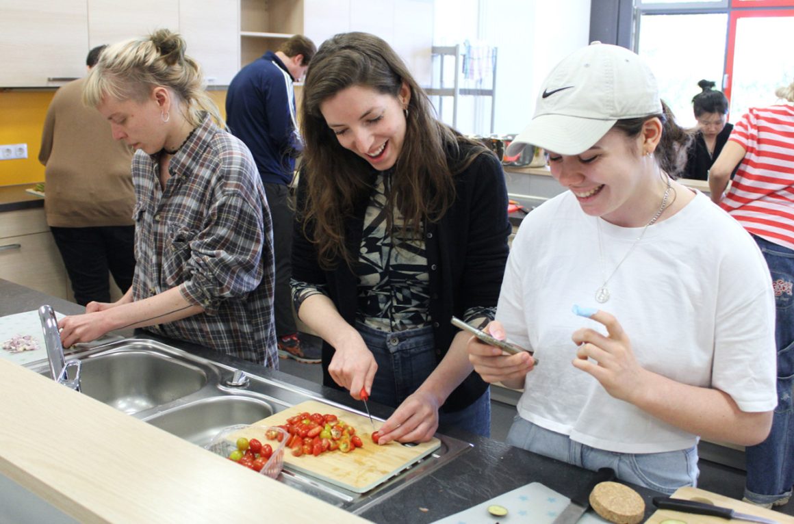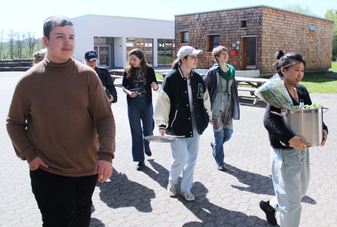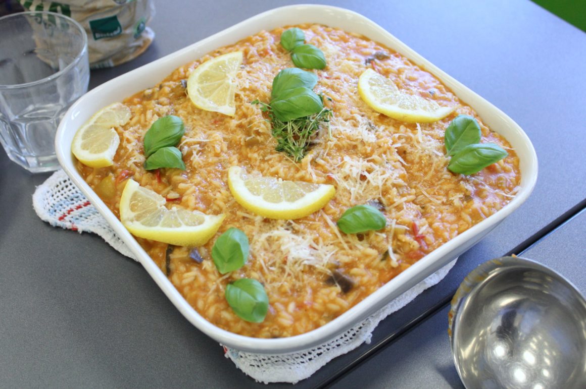 Diesen Genuss haben wir dann in die große Küche verlegt, wo wir ein Risottogericht mit drei zufälligen Zutaten kochten. Der Buchstabe L prägte heute die Exkursion: Leckeres Risotto, Löffel bauen, (Luke, der Schulhund, den wir aber zu unserer Enttäuschung nicht trafen) und das, wovon alle Schüler*innen mal träumten: ein legaler Besuch im Lehrerzimmer.