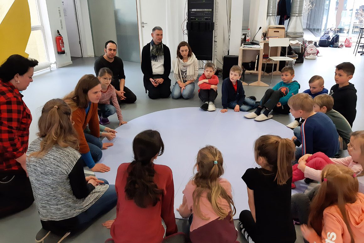 Die Klasse 2a aus Niederbrechen war zum gongongongongong Workshop nach Frankfurt eingeladen. Gongongongongong war ein Projekt im Rahmen einer Ausstellung zum Programm „Das fliegende Künstlerzimmer“.
