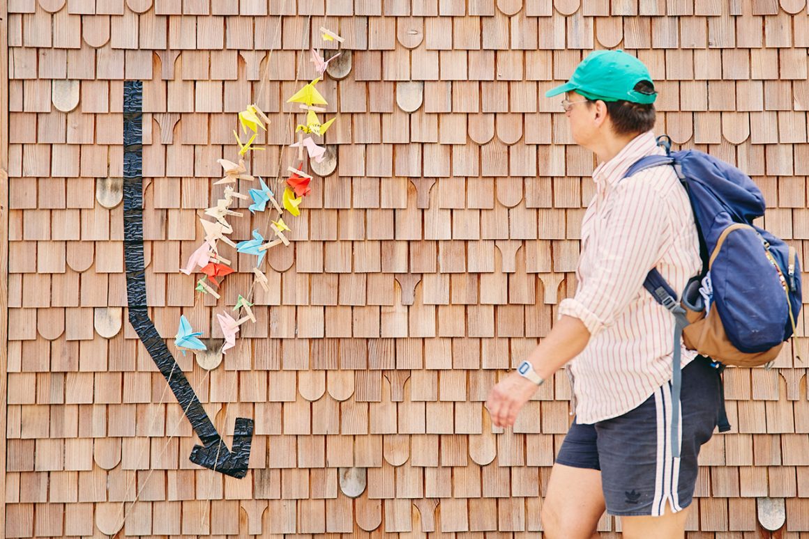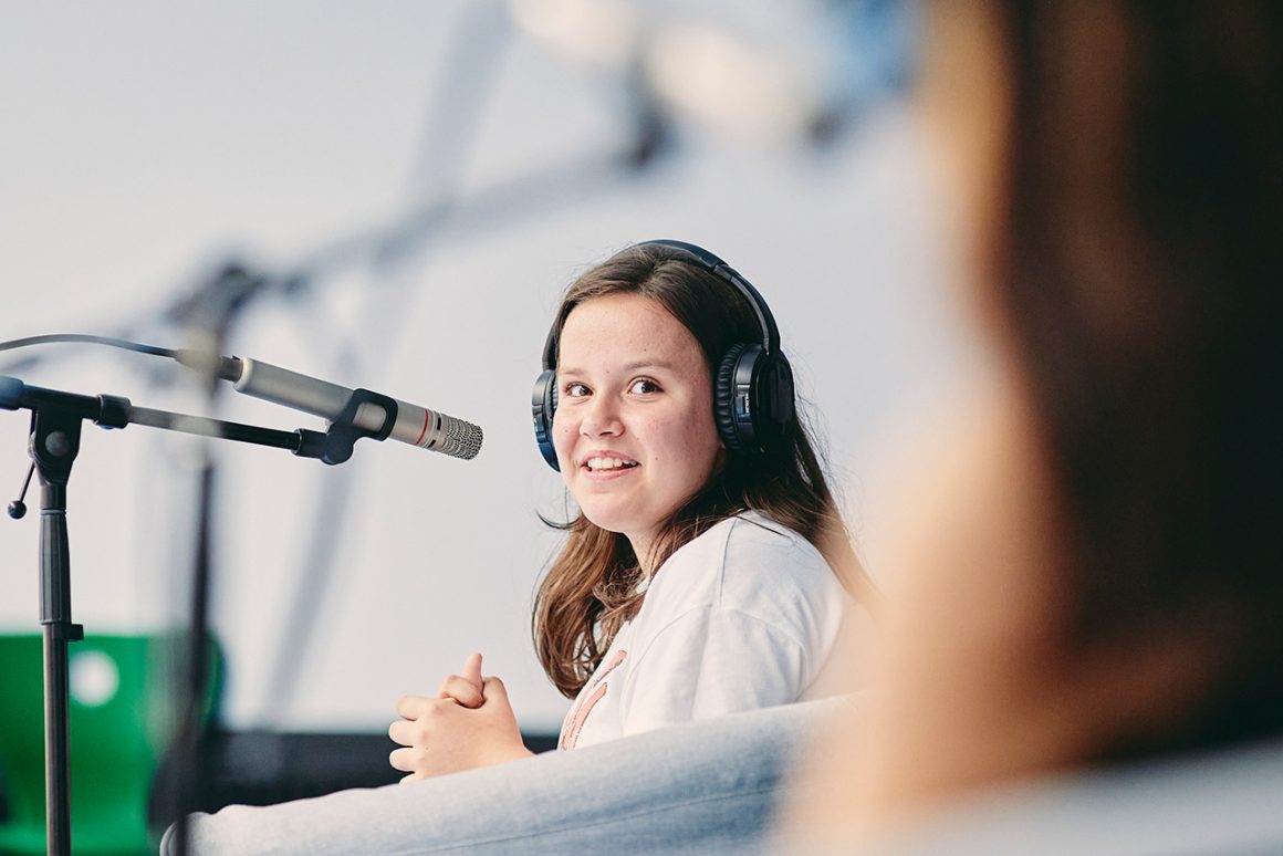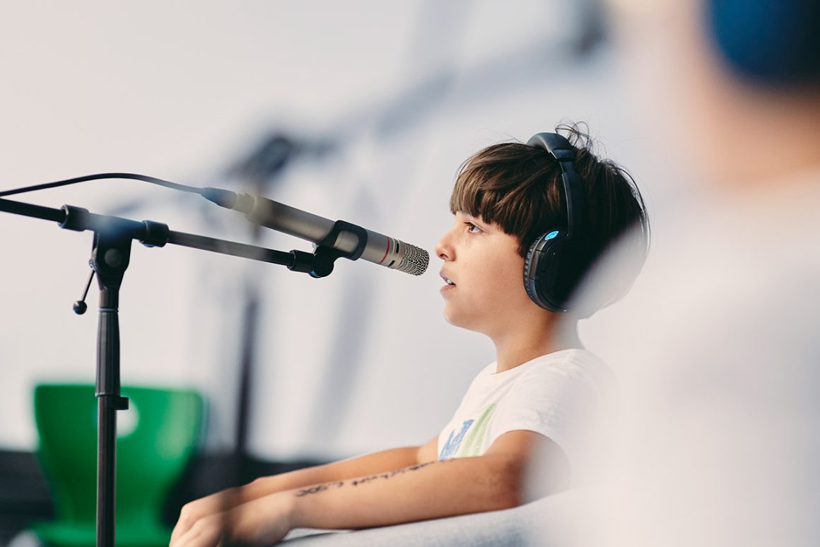 In den Sound-Duschen auf dem Schulhof können Songs erraten und gesammelt werden. Für Eigenkompositionen gibt es Gelegenheit im Grünen Klassenzimmer. Und wer lieber eine nasse Dusche nehmen möchte, kann im „Haus, in dem es regnet“ im Künstlerzimmer vorbeischauen.