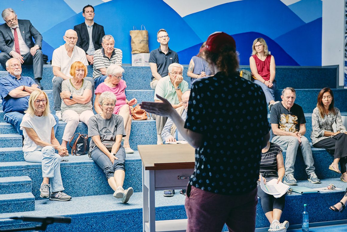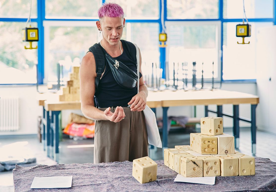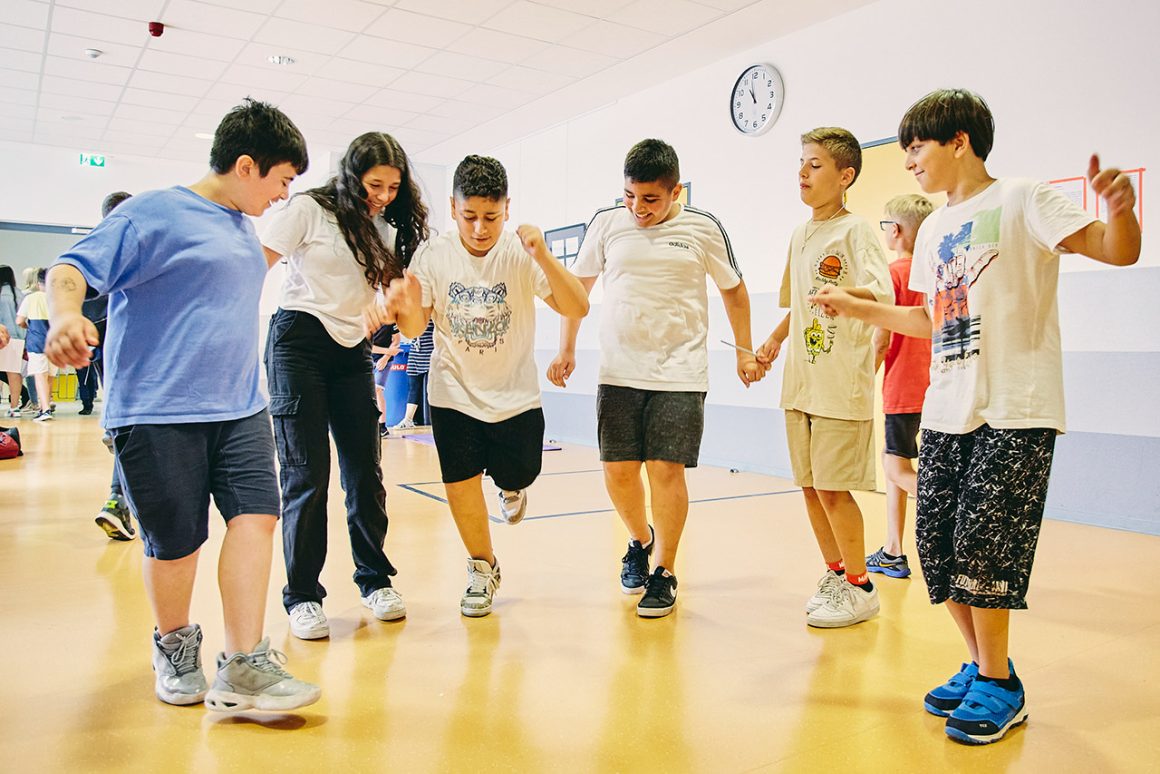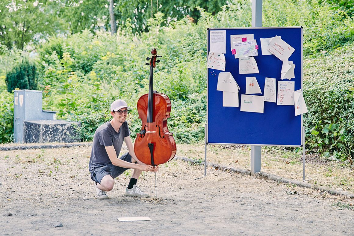 Mit einem großen Parcours verabschiedet sich der Performance-Künstler Leander Ripchinsky zum Schuljahresende von der Adolf-Reichwein-Schule. Über das Schulgelände verteilt gibt es 27 Stationen, die parallel von verschiedenen Klassen durchlaufen werden mit insgesamt 32 unterschiedlichen Aufgabenstellungen, bei denen die Schüler:innen entweder als Teilnehmer:innen oder begleitende Anleiter:innen in Aktion treten.