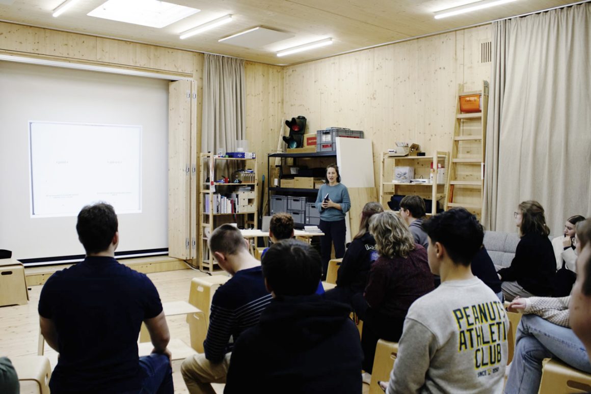 Nach der Vorstellung dieses und vieler anderer Projekte Bauers begann dann der interaktive Teil des Projekts, bei dem die Schülerinnen und Schüler sich mit der Herausforderung befassten, wie man seine Umgebung aus rein klanglicher Perspektive visualisieren kann.