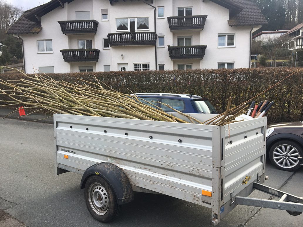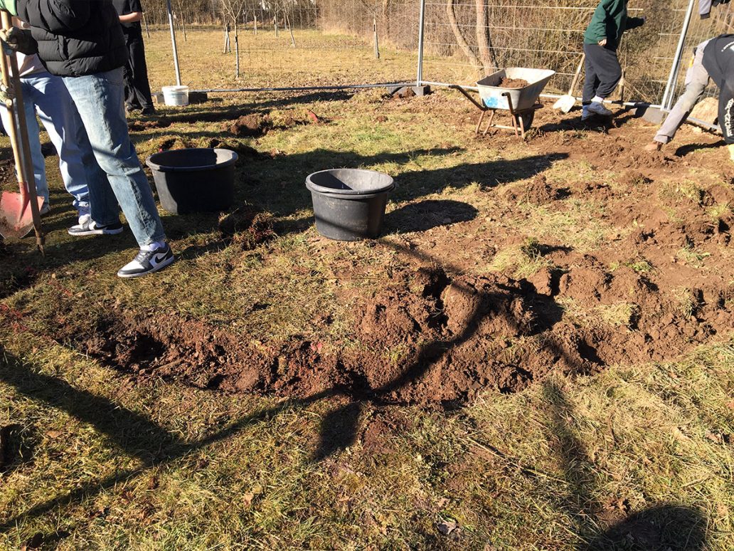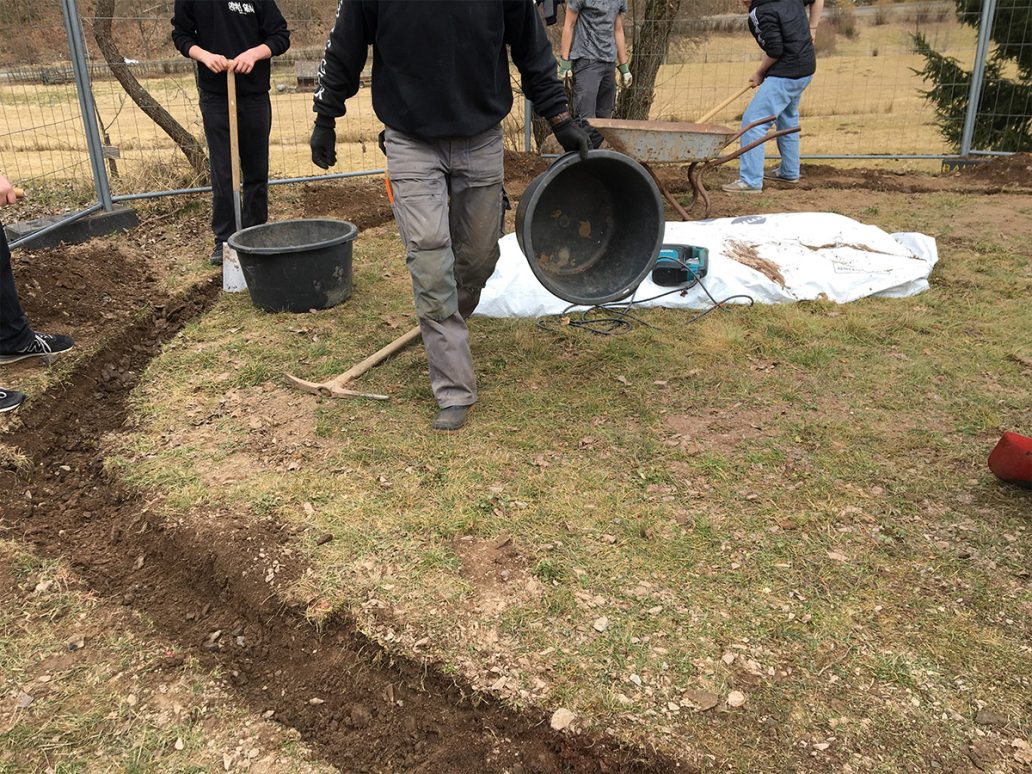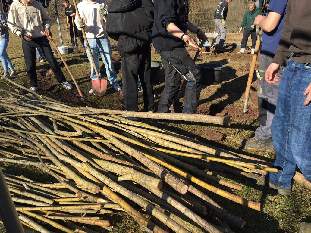 Wir haben ein Weidenhaus gebaut, die Weiden von der Grundschule Battenberg transportiert und einen Kreis gegraben – viel Schiefer im Boden und teilweise noch Frost trotz Sonne.