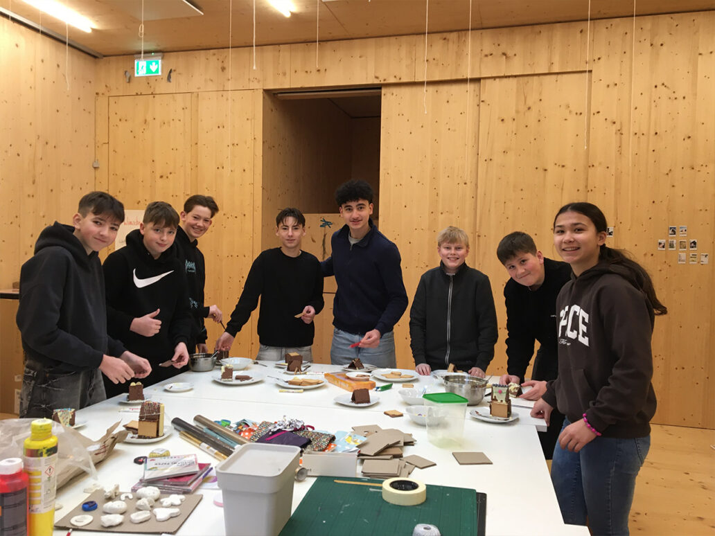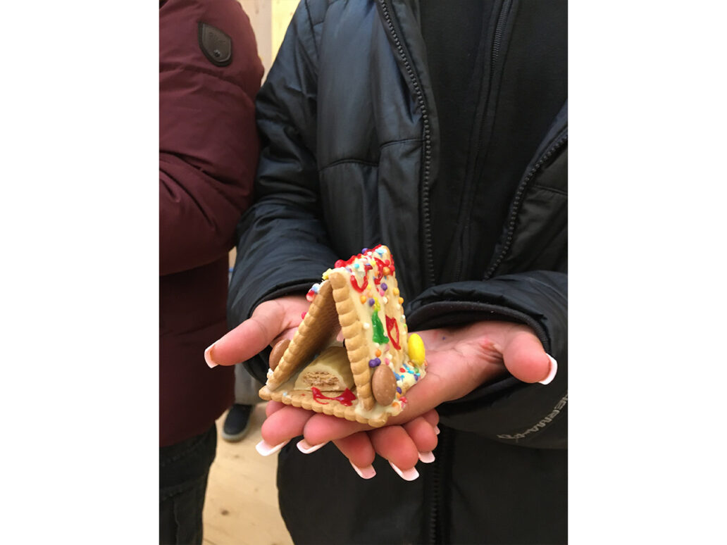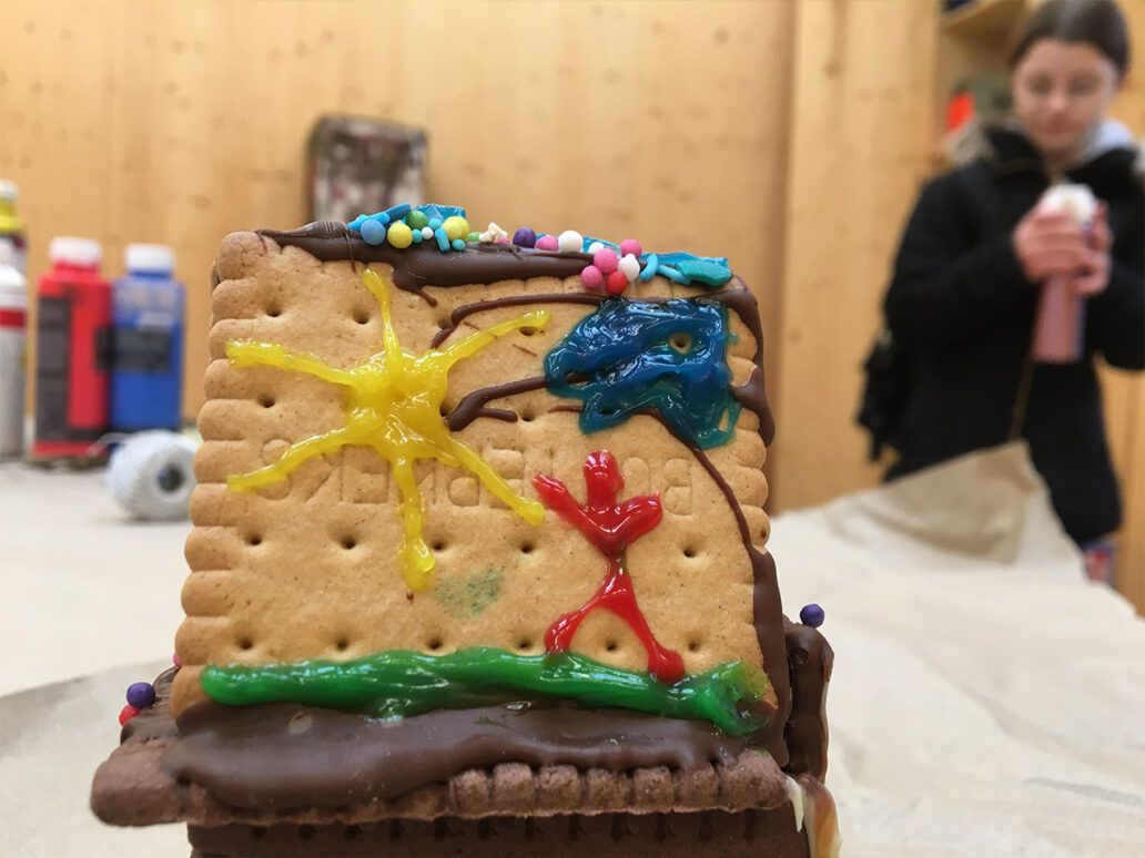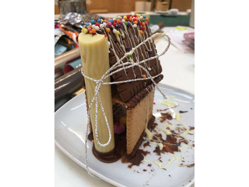 In der Woche vor Nikolaus wurden mit viel Hingabe Kekshäuser angefertigt und mit Schokolade und Zuckerperlen dekoriert.
