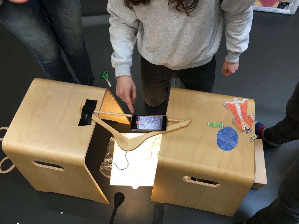 Auch wir haben uns jeweils eine Szene ausgesucht und dann die entsprechenden Figuren, Hintergründe und Gegenstände gezeichnet, ausgeschnitten und gebastelt. Über eine App, in der Einzelbilder direkt als Video angezeigt werden können, konnten wir unsere Filmszene selbst animieren.