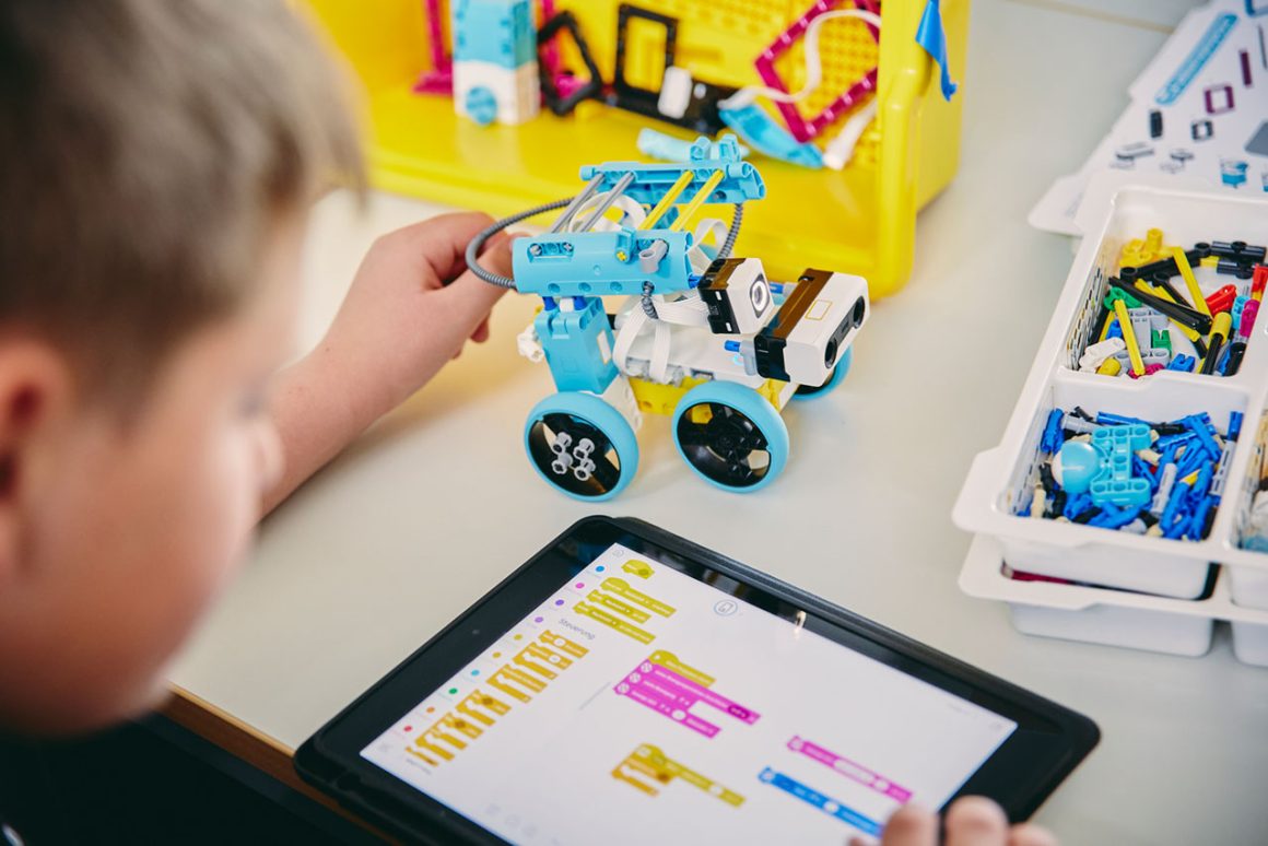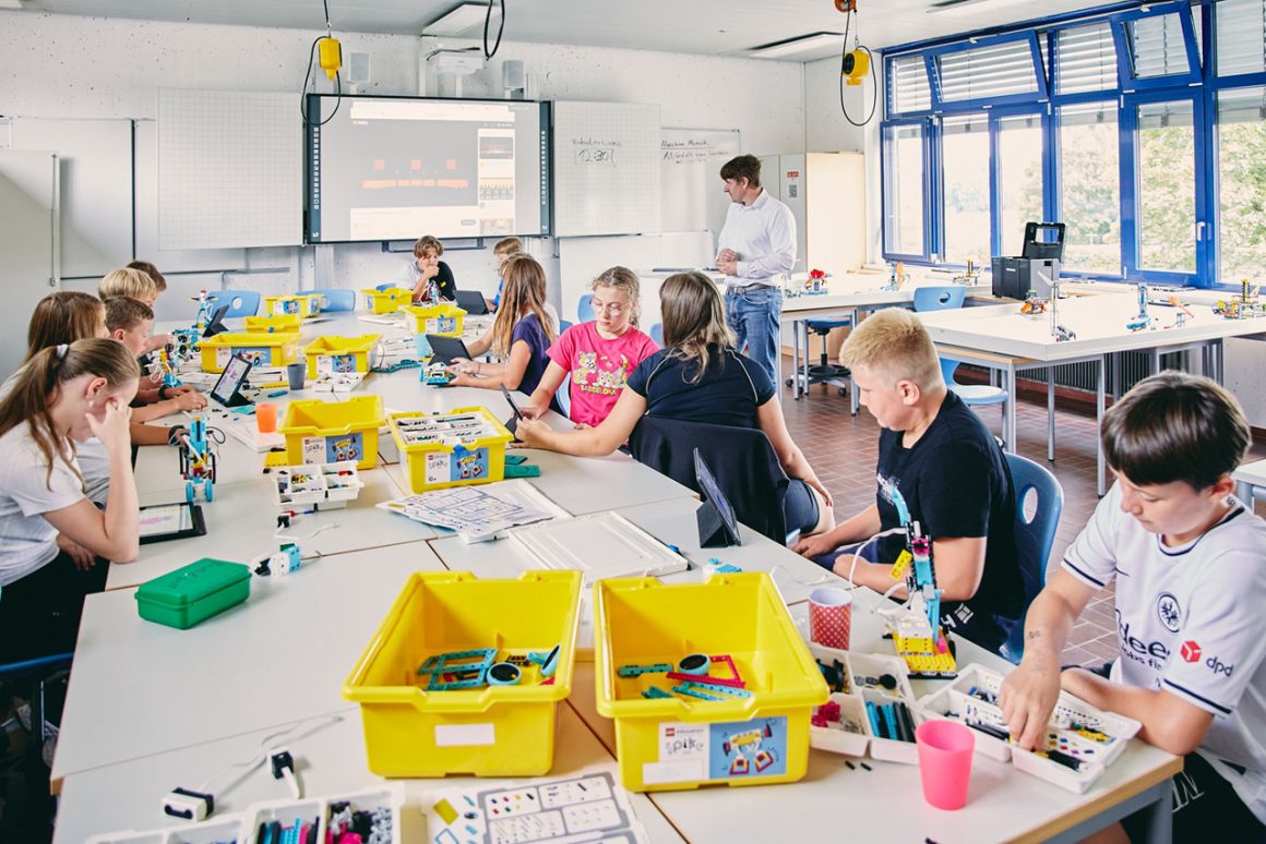 Mit lauter Musik und Gesang, mit tanzenden Robotern und tanzenden Schüler:innen kommt die gesamte Mittelpunktschule in Schwung.