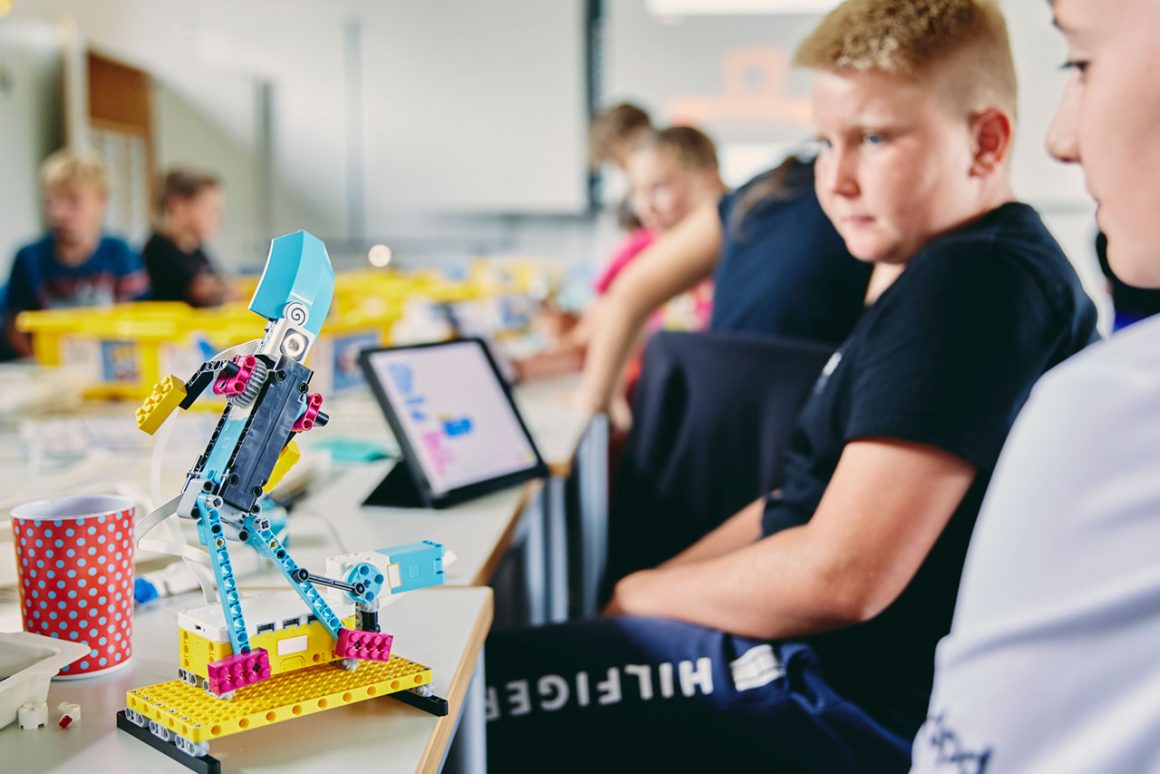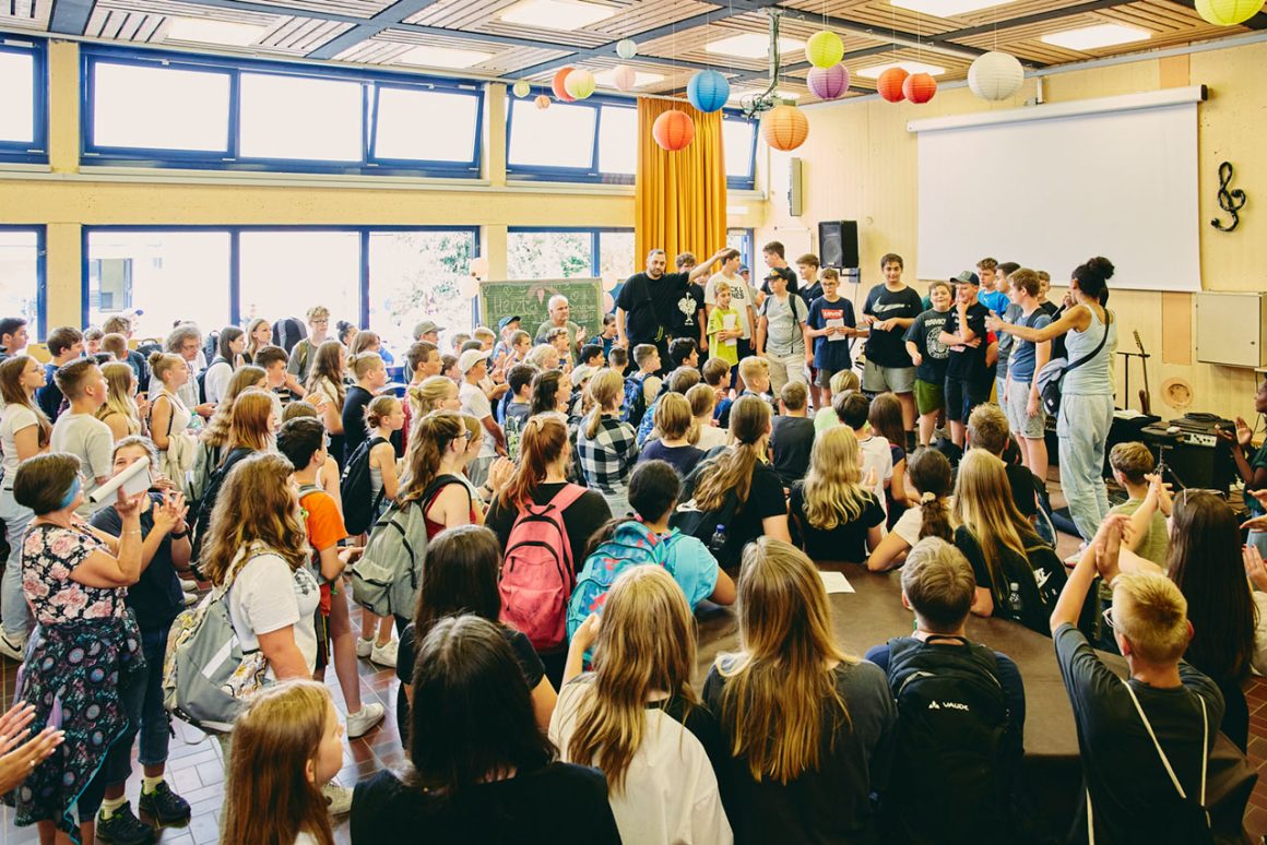 Am Vormittag sind die Grundschüler:innen in Aktion und am Nachmittag die älteren Jahrgänge. Im Vorhinein können sich alle Schüler:innen für die Aktivitäten einwählen, die sie interessieren und im Anschluss an die Workshops in einer gemeinsamen Präsentation gegenseitig die Ergebnisse vorstellen.