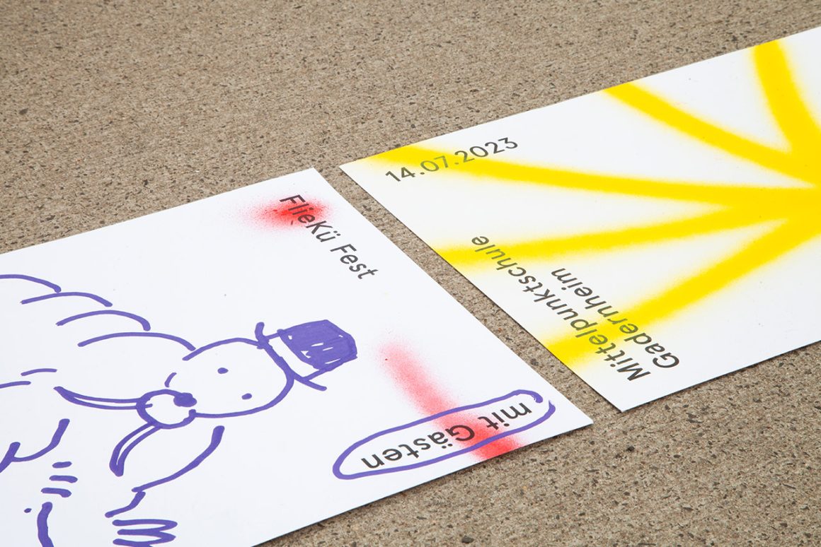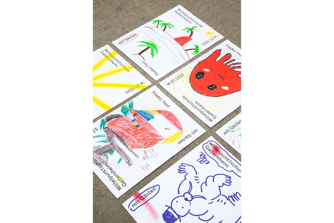 Für das „FlieKü-Fest“ hat der fliegende Künstler Fabian Knöbl gemeinsam mit der Schule ein Programm aus verschiedenen Workshops zusammengestellt und hierfür auch weitere Künstler:innen nach Gadernheim eingeladen. Bereits im Vorfeld gestalten Schüler:innen individuelle Plakate für das Fest und auch Lehrkräfte sind tatkräftig involviert und betreuen einzelne Angebote.