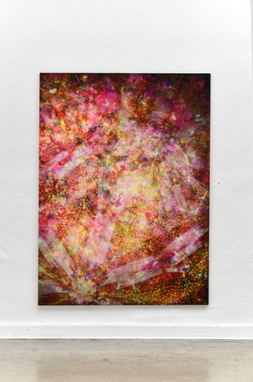 The K series has emerged since 2017 in the style of photographs from the Hubble telescope and the image processing that they undergo before publication. Countless individual images from a kaleidoscope produce pulsating colour fields in meticulous image processing. Using shifts in the colour spectrum within established parameters, galaxies are produced that are transferred onto velvet using a special printing process.
