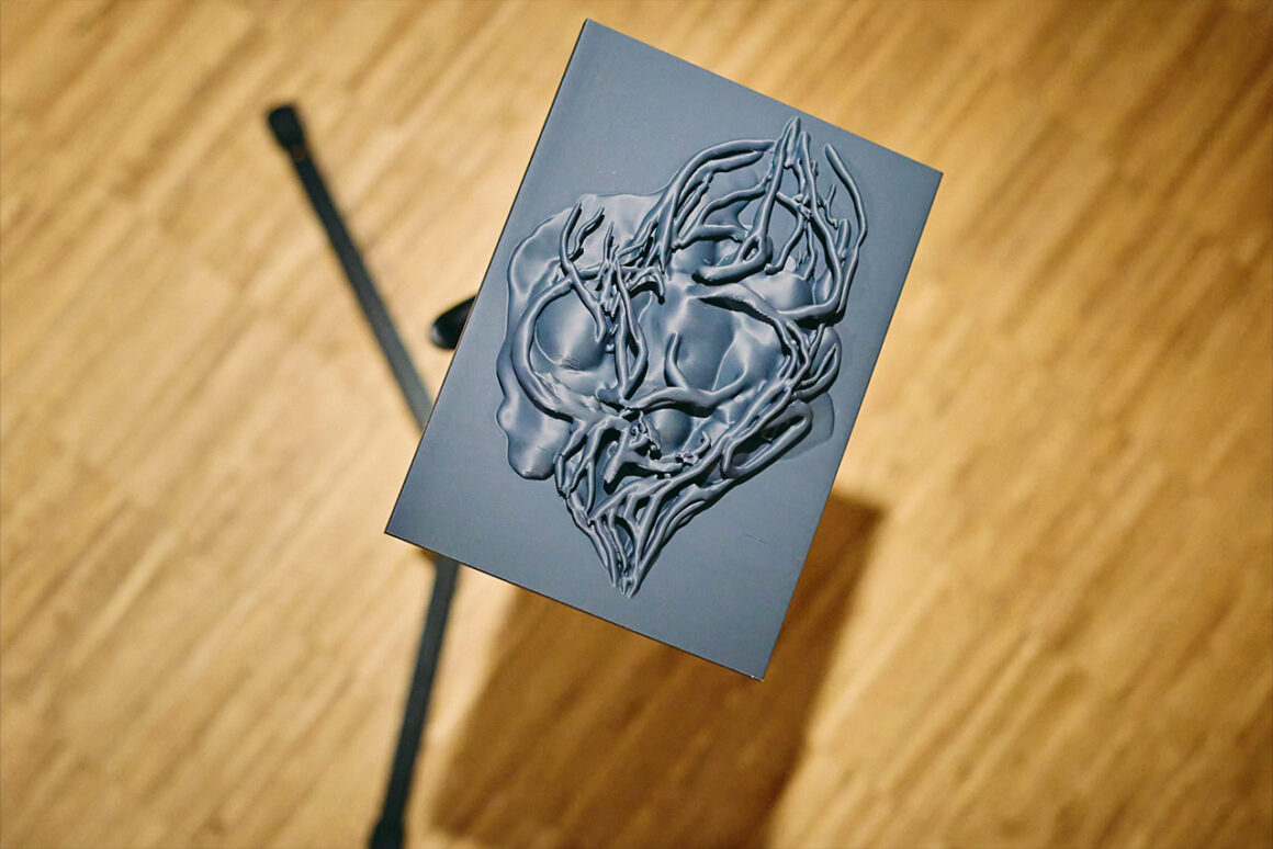 Im Untergeschoss des Crespo Hauses führt uns Damaris Wurster mit einer Rauminstallation in die Geschichte des erdähnlichen Planeten X179 ein, dessen Bewohner:innen von ihrer eigenen künstlichen Intelligenz ausgelöscht wurden. Angesichts der jüngsten Nachrichten chemischer Verbindungen auf dem Exoplaneten K2-18b, die auf der Erde bislang nur von lebenden Organismen produziert werden, wirkt Wursters Zukunftsszenario erschreckend nah. Mit ihrem Hintergrund in Film und bildender Kunst erschafft Wurster mit Videoinstallationen, Soundscapes und 3D-gedruckten Artefakten neue Welten zwischen Science-Fiction und Realität, in denen sie während ihres Aufenthalts am Gymnasium Nidda die gesellschaftlichen Auswirkungen künstlicher Intelligenz erforscht.
