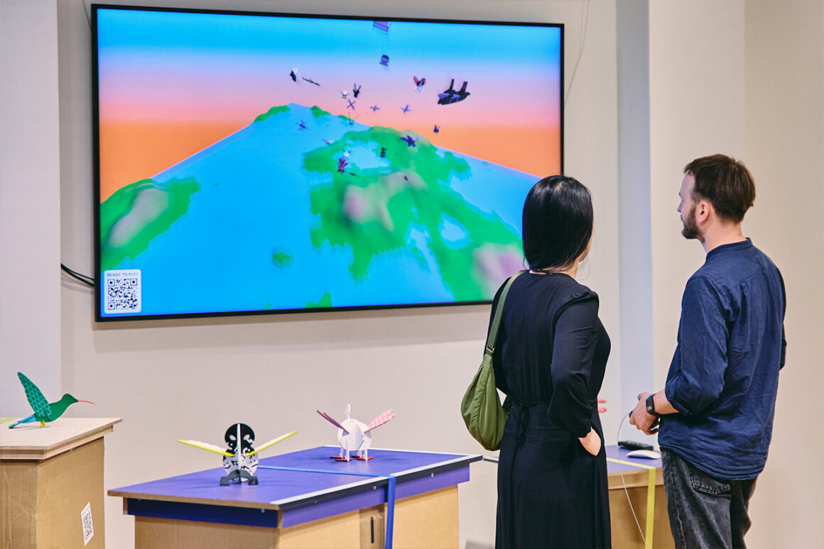 Als Medienkünstler arbeitet Dawid Liftinger mit Licht und Klang und erforscht dabei die Grenzen menschlicher Wahrnehmung. Seine Arbeiten entstehen an der Schnittstelle von Technologie, Sinneserfahrung und künstlerischer Forschung. Losgelöst von seinen eigenen experimentellen Ansätzen, öffnet Liftinger den Raum für die Ideen der Schüler:innen – frei von Erwartungen und Leistungsdruck. Im Rahmen eines Workshops mit der Designerin Tang Wan-Jung und den Jugendlichen wurden imaginäre Flugobjekte entwickelt: Zunächst gezeichnet, dann animiert und schließlich im 3D-Druck zum Leben erweckt. Der Entstehungsprozess ist dabei ebenso Teil der Ausstellung wie die fertigen Objekte selbst. Der Workshop hatte zum Ziel, das Hauptvisual für die Ausstellung “Zwischenlandung” zu entwickeln, das auf den Postern und Flyern zu sehen ist.